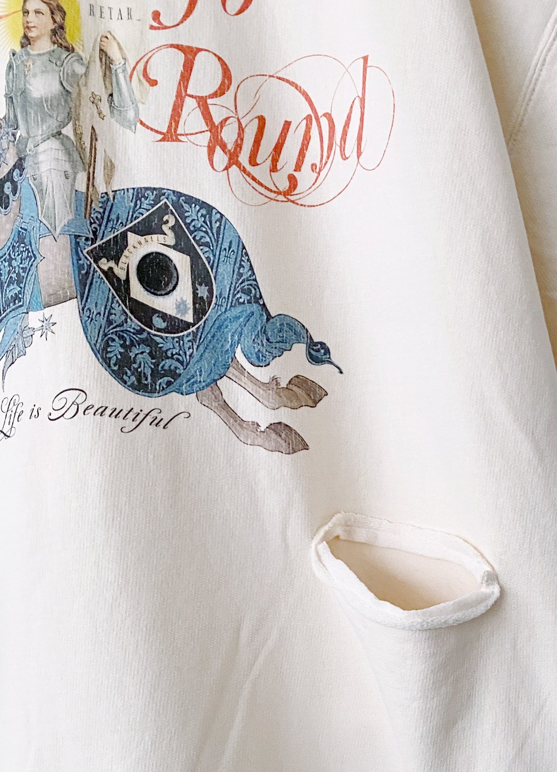 レーヨン混の素材で柔らかい肌触りのオーバーTeeです。 とろんとした素材感で、落ち感のあるラインです。 それぞれのカラーに対して、プリントデザインが異なります。 グレィリー(グレー)、メリーゴー…