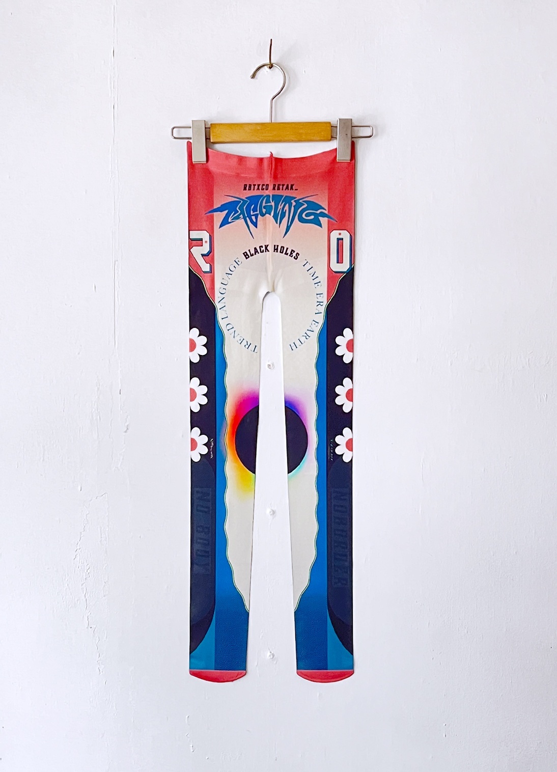 ブラックホールズTeeのデザインをそのまま落とし込んだ総柄タイツ。