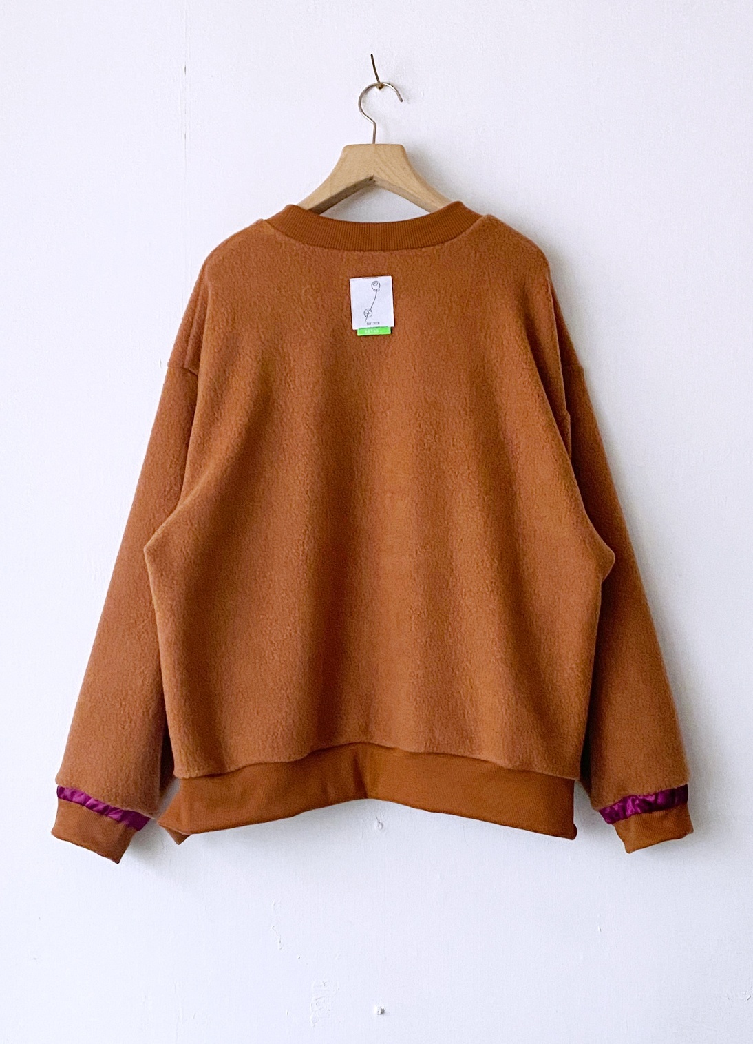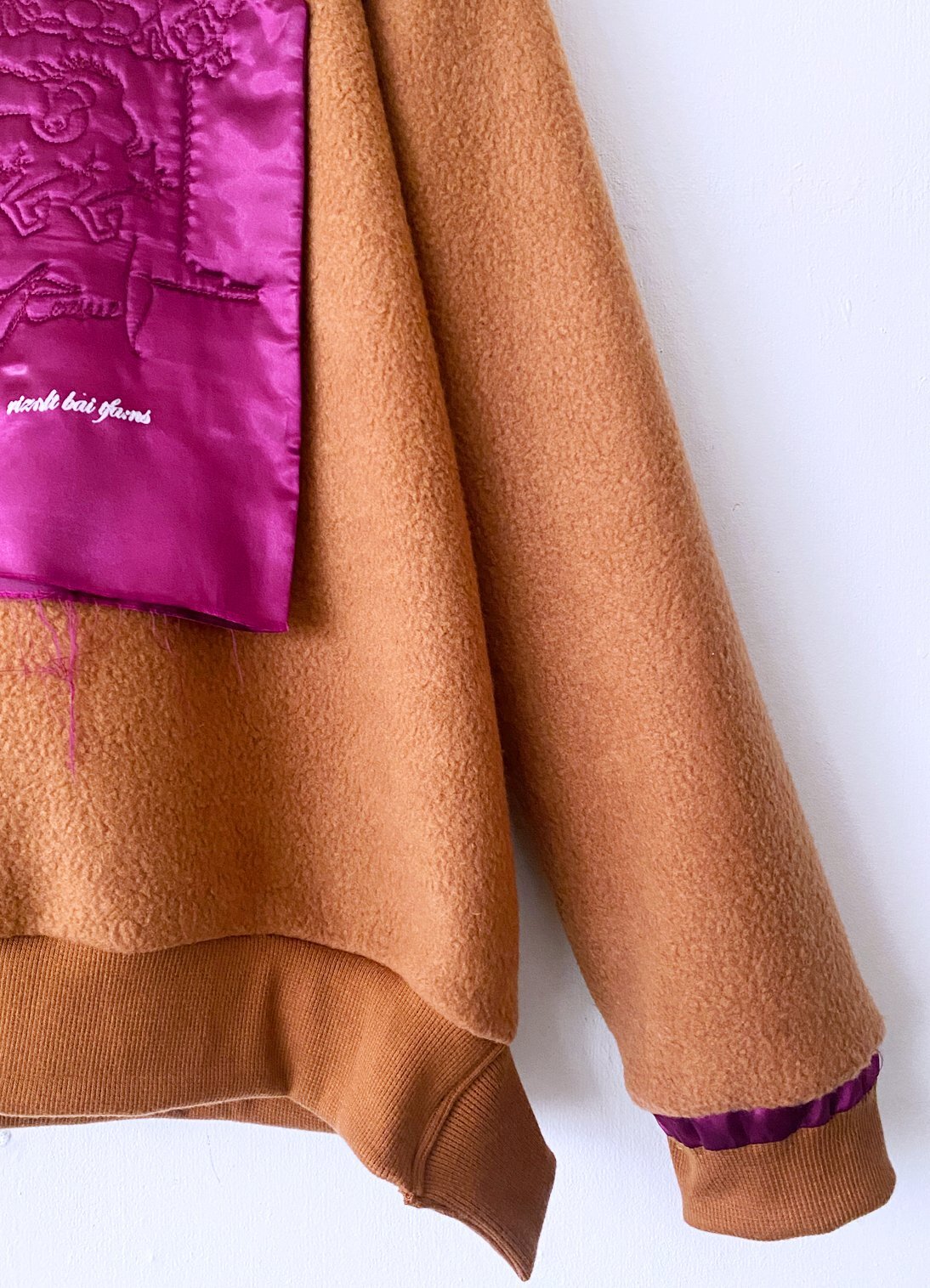 フリースなのでとても暖かいです。袖の先はサテン生地との切り替えになっています。