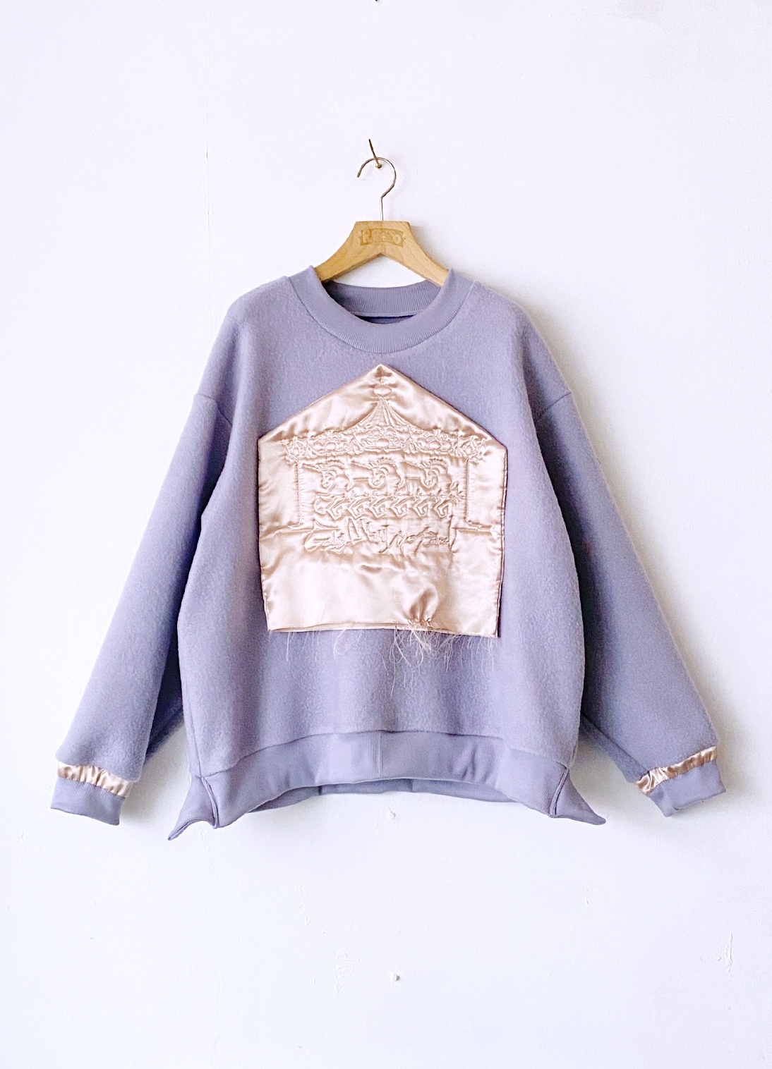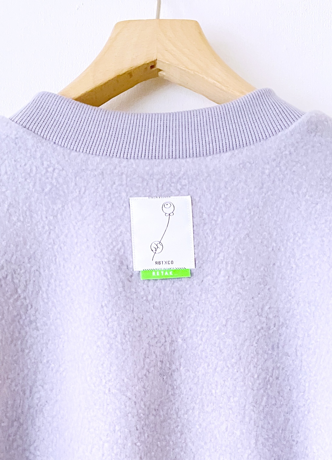 花柄に落書きをされたようなデザインのボアで仕立てたカーディガン。 ボアはオリジナルテキスタイル。胸に付けられたRのワッペンは下の方が毛羽立っていて、テーマに沿った朽ちていく美しさを手作業で表現したデ…